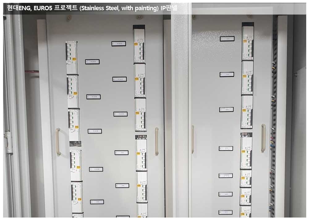 현대ENG, EURO5 프로젝트, IP판넬 페이지 정보 작성자 관리자 작성일19-10-28 13:15 조회19,770회 댓글0건 관련링크 이전글 다음글 목록 본문 공급품목 : IP판넬판넬크기 : 1850*2300*450판넬특징 : Stainless Steel 재질의 판넬에 painting 처리한 판넬입니다. Breaker 독일제품(Schneider)을 사용하였습니다. 댓글목록 등록된 댓글이 없습니다. 이전글 다음글 목록